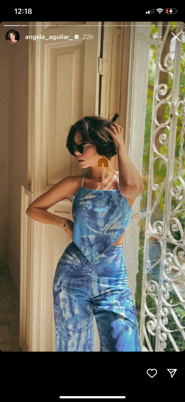La cantante de raíces mexicana, Ángela Aguilar, sorprendió a sus seguidores en sus historias de Instagram donde se mostró con un conjunto estampado de color azul donde se exhibía su figura. A pesar que no escribió nada en la imagen, la hija de Pepe Aguilar se mostró muy sensual con un top y con un pantalón de corte alto.