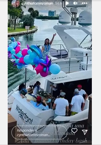 Tras fotografiarse y pasar un rato agradable a bordo del yate, le taparon los ojos con un antifaz para que no pudiera ver en principio su lugar destino, caminó agarrada de manos de su hija, hasta que pisaron tierra firme para sorprenderla, que la habían llevado a Las Bahamas para que terminara de festejar en grande su nuevo año de vida.