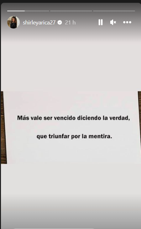 A través de sus historias, la famosa, que cuenta con más de 2 millones de seguidores en la red social, dijo: “Más vale ser vencido diciendo la verdad, que triunfar por la mentira”.