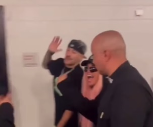 Antes de que el intérprete de ‘Hey mor’ se subiera a tarima, la considerada “pareja del momento” fue grabada en los pasillos del Kaseya Center, corriendo llenos de felicidad y adrenalina mientras estaban agarrados de manos rodeados del equipo de trabajo del colombiano.