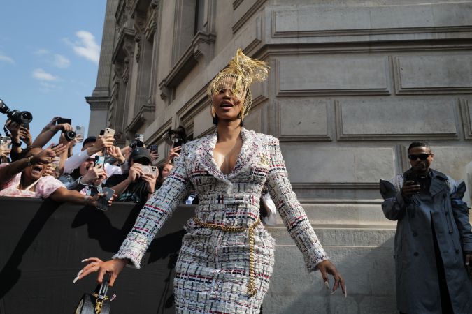 La cantante Cardi B optó por un look elegante y de alta costura para asistir al desfile de uno de sus grandes diseñadores Thom Browne en París, Francia