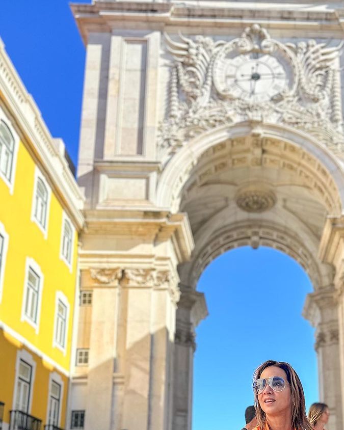 La primera parada en el viaje de Adamari fue Lisboa, la capital de Portugal, en donde evidenció que estaba disfrutando de un clima cálido y por eso optó por escoger un jumpsuit corto de color naranja que la entonaba a la perfección con sus días de verano.