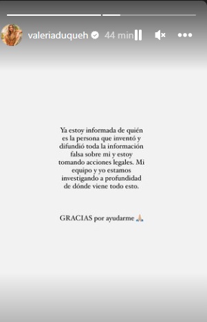 La modelo colombiana, Valeria Duque, reprochó que la hayan involucrado en una historia falsa en la que la culparan de ser la causante del rompimiento de Rauw Alejandro y Rosalía