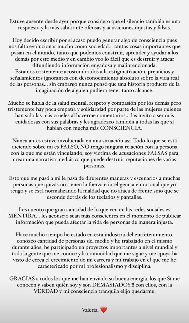 A la par de que Rauw Alejandro y Rosalía se pronunciaron, la modelo colombiana, Valeria Duque hizo lo mismo, para desmentir las acusaciones que han hecho en su contra, de ser la tercera en discordia en la relación de los cantantes que llegó a su final.