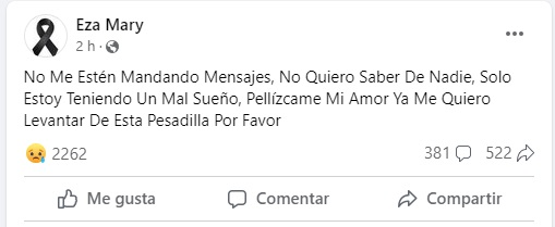 «No me estén mandando mensajes, no quiero saber de nadie, solo estoy teniendo un mal sueño, pellízcame mi amor, ya me quiero levantar de esta pesadilla, por favor», escribió la viuda.