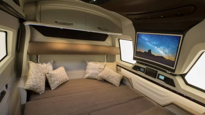 Se trata de la Pinnacle Finetza, campervan de lujo elegida por Christian Nodal y Cazzu para ser su compañera de viajes y giras. Mide casi siete metros de largo, ampliable a ocho metros y medio.