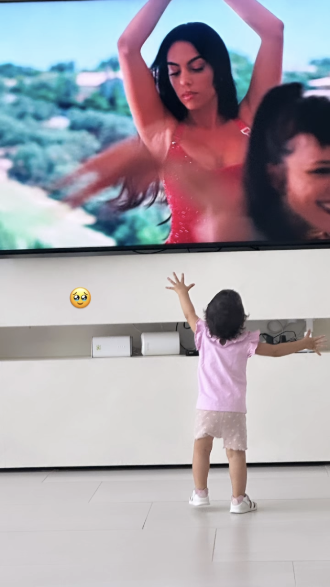 Mateo, Eva y Alana Martina, hijos de la pareja, estuvieron presentes durante el rodaje, como compartió la emprendedora en su cuenta de Instagram, y la pequeña Bella Esmeralda reaccionó de la manera más tierna al ver a su mamá en la pantalla.