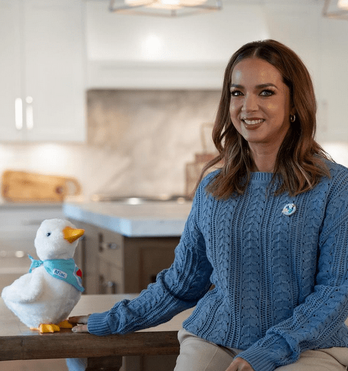 La actriz posó junto al robot terapéutico que la empresa obsequia a los niños con cáncer y anemia de células falciformes.