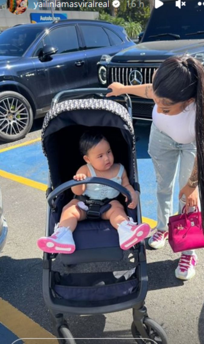 En las imágenes, la pequeña de siete meses aparece dentro de su coche mientras su madre la observa con atención. Se presume que las fotos fueron tomadas en República Dominicana, ya que hace dos días el cantante Tekashi se grabó mientras viajaba con la influencer a suelo dominicano.