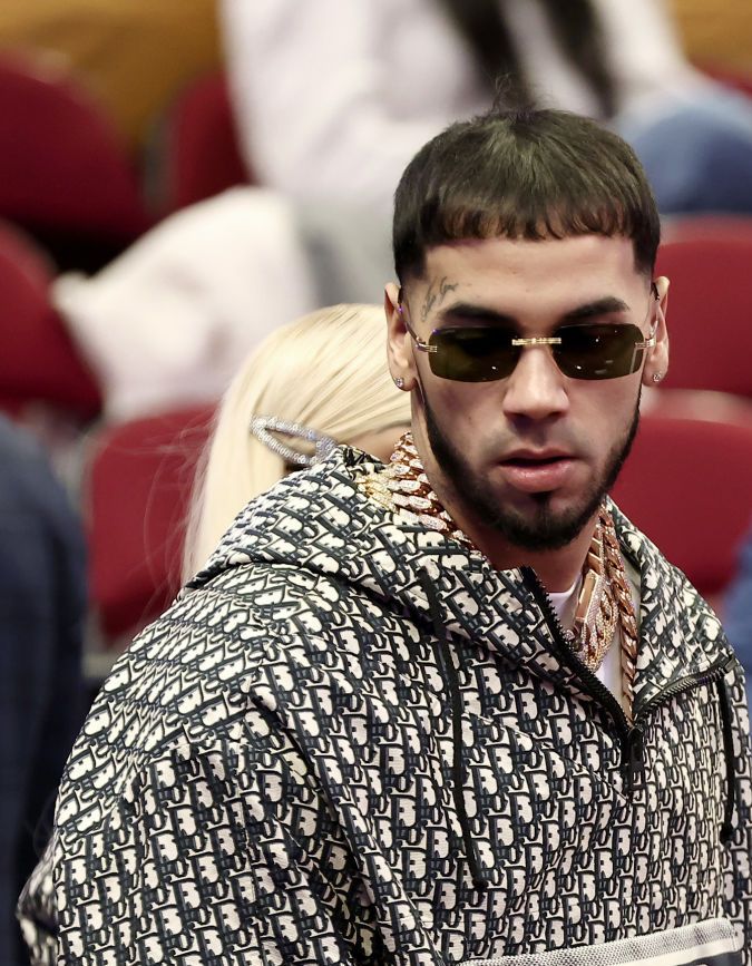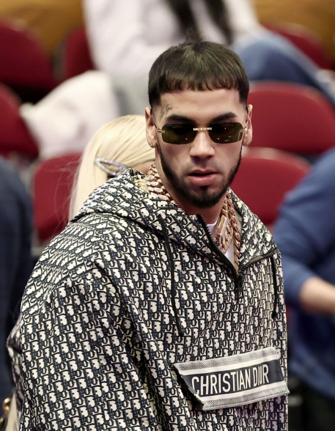 Anuel AA es visto durante el Taco Bell Skills Challenge como parte del fin de semana All-Star 2022 en Rocket Mortgage Fieldhouse el 19 de febrero de 2022 en Cleveland, Ohio.