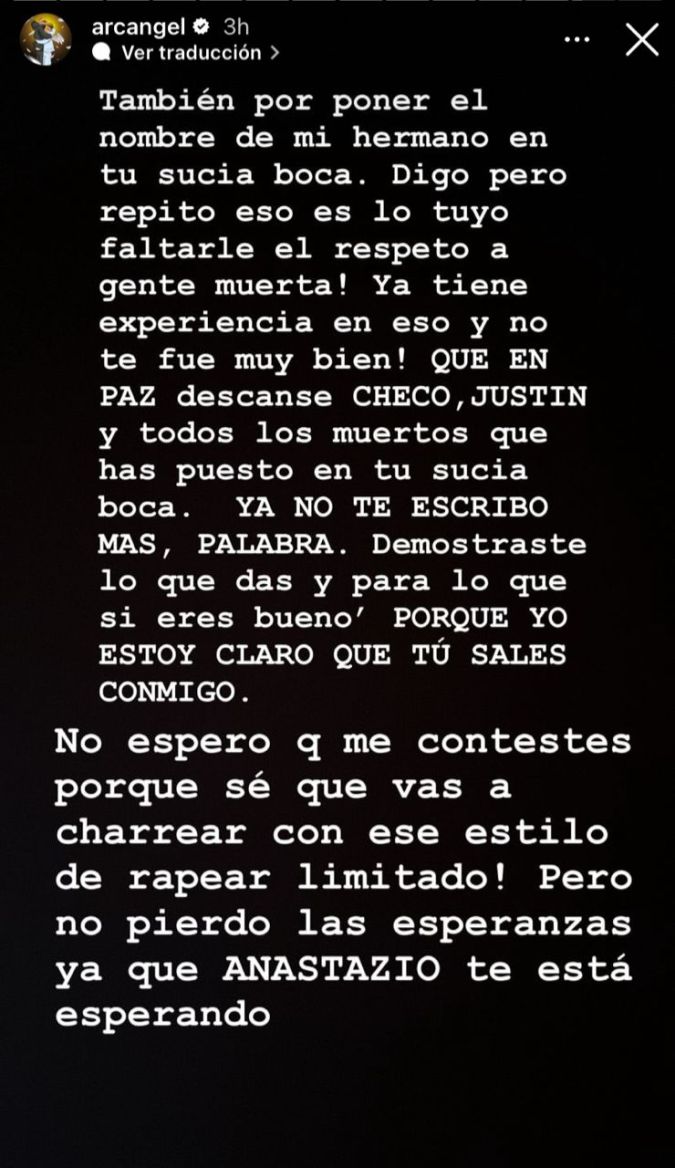 Luego de que Anuel AA le respondiera a través de sus stories de Instagram, Arcángel reaccionó también por la misma vía desde su perfil y se mostró “aburrido” de las amenazas que le hizo su colega, pero también reveló que sacará otra tiradera.