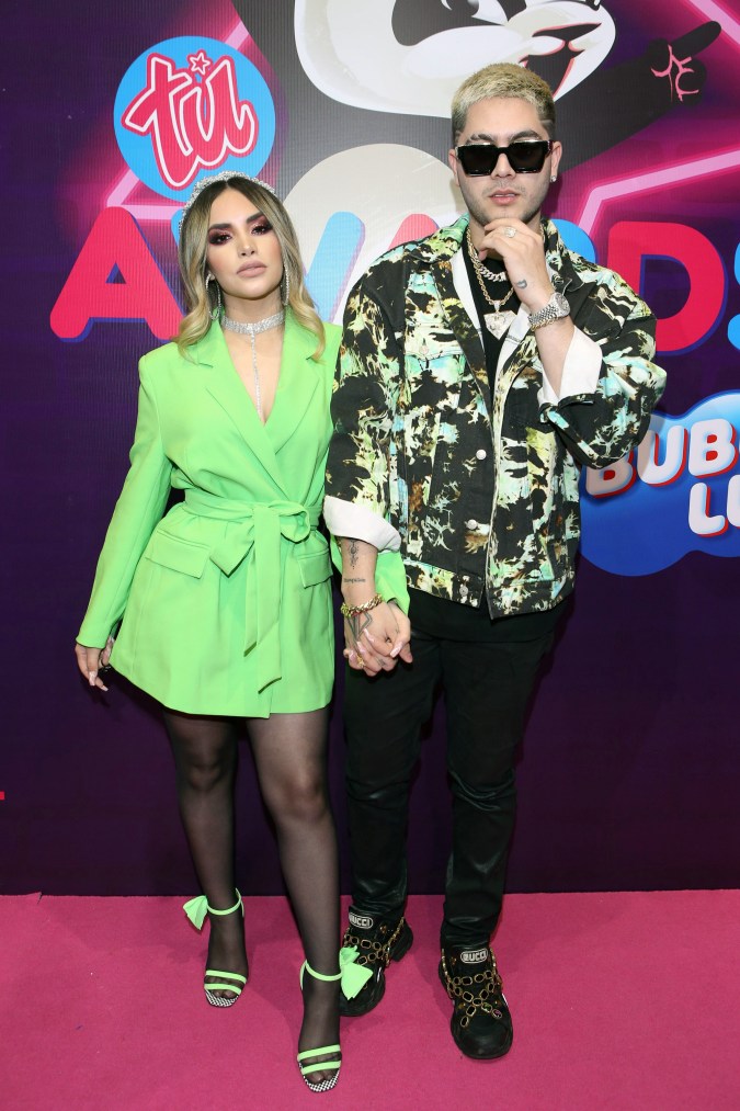 Juan De Dios Pantoja y Kimberly Loaiza asisten a los Premios Spotify 2020 en el Auditorio Nacional el 5 de marzo de 2020 en Ciudad de México, México. Crédito: Víctor Chávez | Getty Images