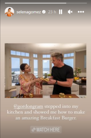 Selena Gomez regresó a las redes sociales, después de una pausa de 18 horas. La cantante compartió una publicación para promover una colaboración con el chef Gordon Ramsay.