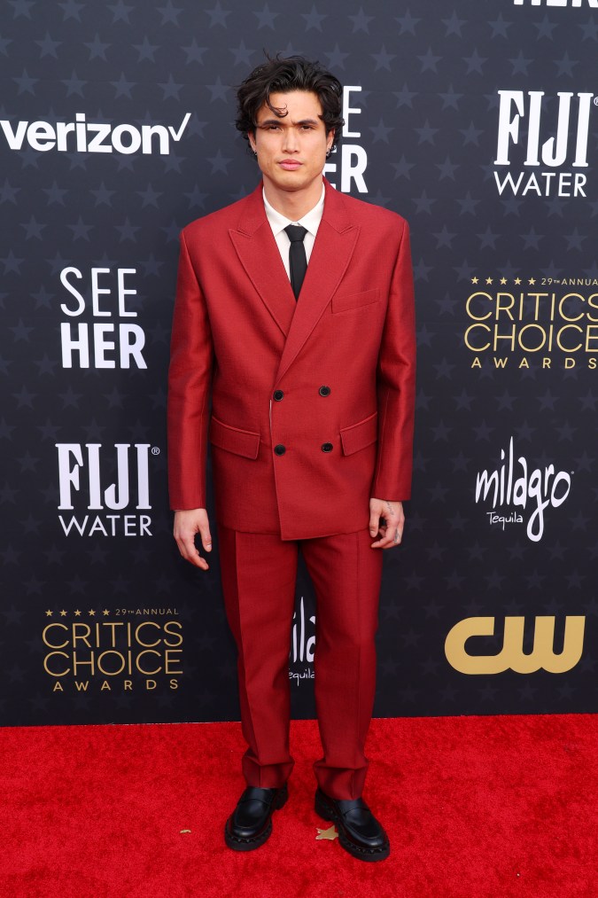 El actor de ‘May December’, Charles Melton, también optó por un traje de color rojo y lució genial. La elección estuvo acorde a los premios y dejó de lado el clásico traje de color negro.