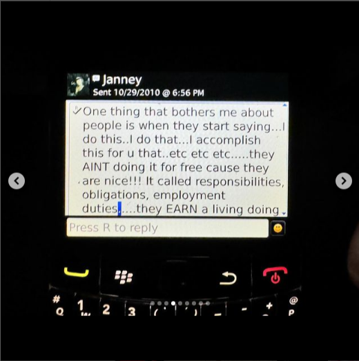 Su madre responde: “Una cosa que me molesta de la gente es cuando empiezan a decir: ‘Hago esto, hago aquello, hago esto por ti aquello’. No lo hacen gratis porque son amables. Se llama responsabilidades, obligaciones, deberes laborales, ellos se ganan la vida haciendo todo eso para nosotros, y además reciben bonificaciones y buen trato y además un trabajo para su marido. Maldición”.
