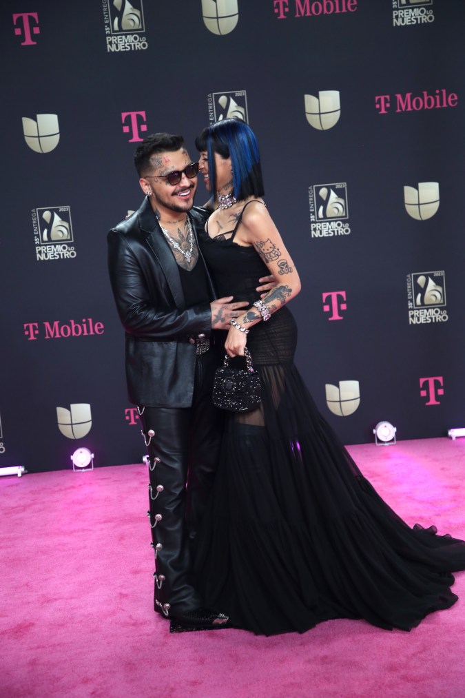 Christian Nodal y Cazzu en la alfombra magenta de la 35 edición de Premio Lo Nuestro/Miami, 23 de febrero 2023.