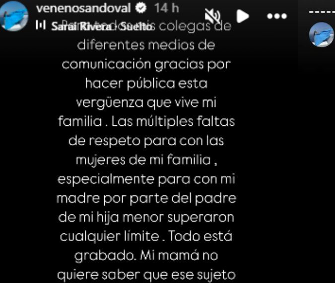 «Este sujeto ya hizo este mismo show de decir que a la niña la tenemos «secuestrada» en el baile de Navidad del colegio el pasado 14 de diciembre. Esto es una acusación sin fundamento», expresó Sandoval en sus stories.