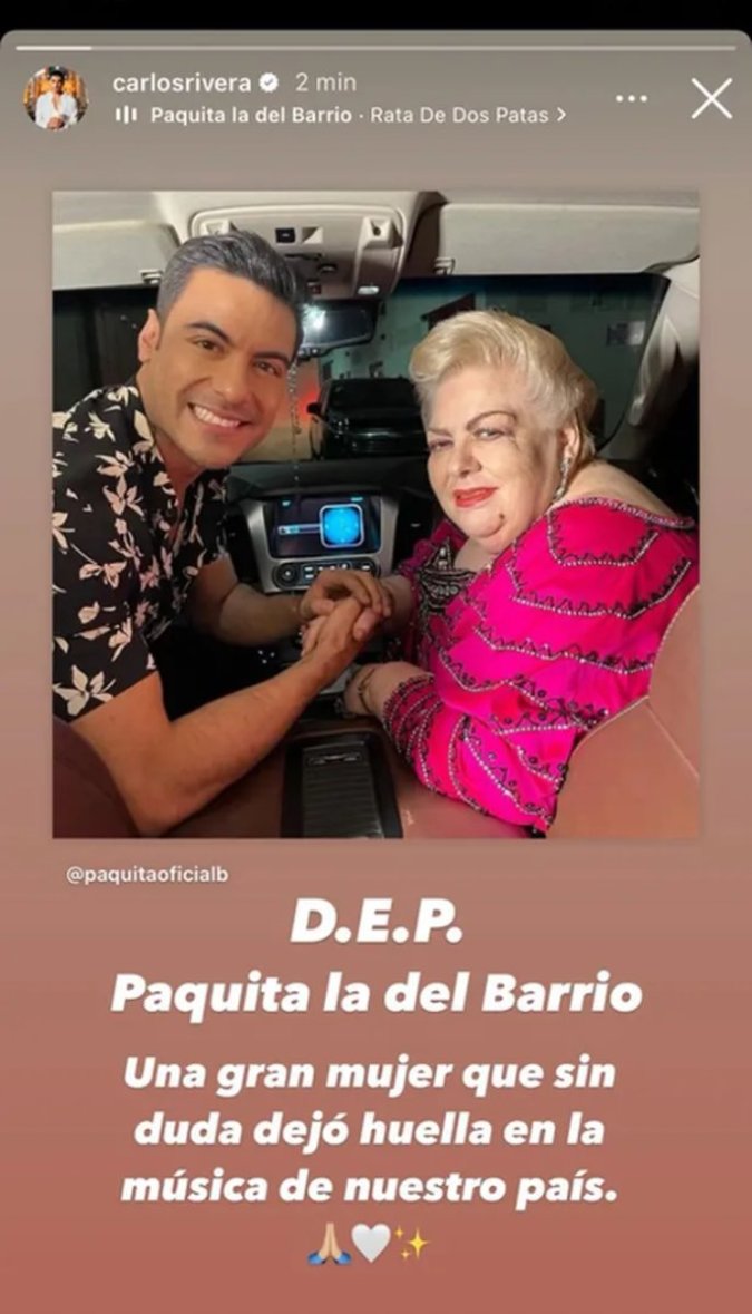 El cantante de regional mexicano recordó las veces que cantó junto a Paquita la del Barrio en tarima. «Fue un placer compartir escenario en algunas ocasiones, mi más sentido pésame a familiares, amigos y fans», expresó en su cuenta de Instagram.