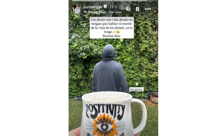 “Les deseo una vida donde no tengan que hablar ni mentir de la vida de los demás. Yo la tengo. Buenos días”, en una fotografía que sale su esposo de espaldas, mientras ella sujeta una tasa de café.