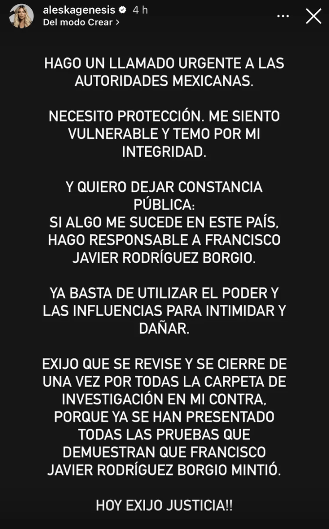 La modelo venezolana Aleska Génesis, conocida por su participación en el reality show “La Casa de los Famosos”, ha elevado su voz en redes sociales, exigiendo a las autoridades mexicanas medidas de protección ante lo que describe como una creciente sensación de vulnerabilidad.