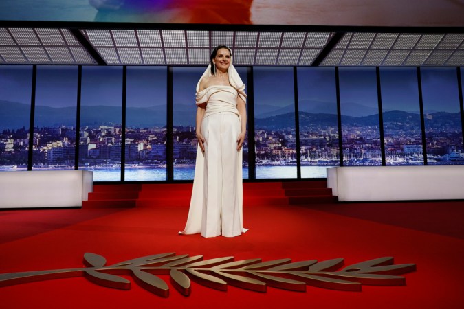 La presidenta del jurado que otorga la Palma de Oro, que por cierto está de acuerdo con la regla que prohíbe la desnudez en el prestigioso certamen, optó por un conjunto de pantalón sastre con una blusa que dejó sus hombros descubiertos y simulaba un velo en tono rosa pálido de Christian Dior Couture.