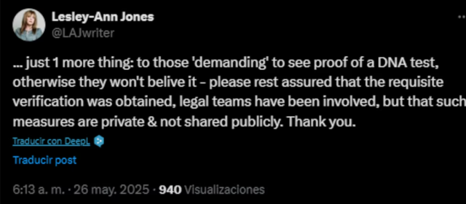 Las críticas más comunes exigen la presentación de pruebas de ADN que respalden sus afirmaciones. Ante este aluvión de escepticismo, la escritora no ha tardado en pronunciarse a través de sus redes sociales, concretamente en X, donde se defendió alegando que cuidó cada detalle por respeto a sus lectores.