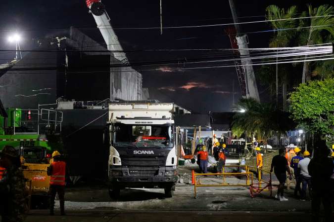 Rescatistas en la discoteca Jet Set tras el derrumbe del techo, que causó la muerte de más de 200 personas en Santo Domingo, República Dominicana, el jueves 10 de abril de 2025. (Foto AP/Matias Delacroix). Crédito: AP