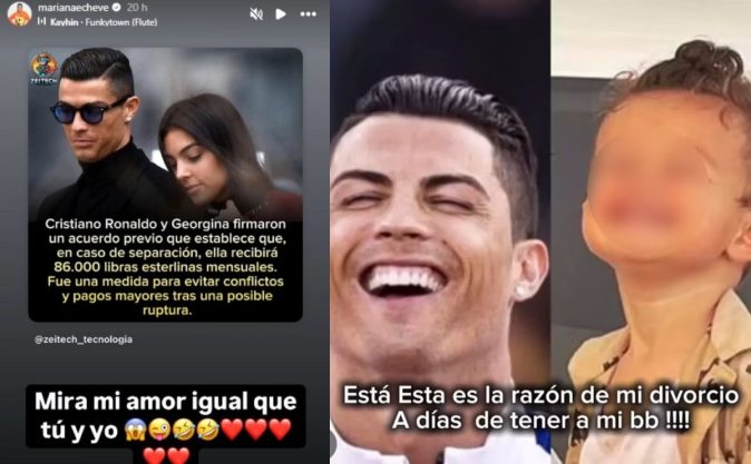 Además, en otro storie, la presentadora compartió una foto de CR7 junto a Georgina Rodríguez con una información de un supuesto acuerdo económico en caso de que ocurra una ruptura. De acuerdo a Mariana Echeverría, ella y su esposo “firmaron” un contrato parecido.