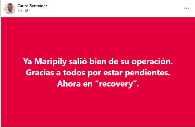 “Ya Maripily salió bien de su operación. Gracias a todos por estar pendientes. Ahora, en recuperación”, escribió en sus redes sociales.