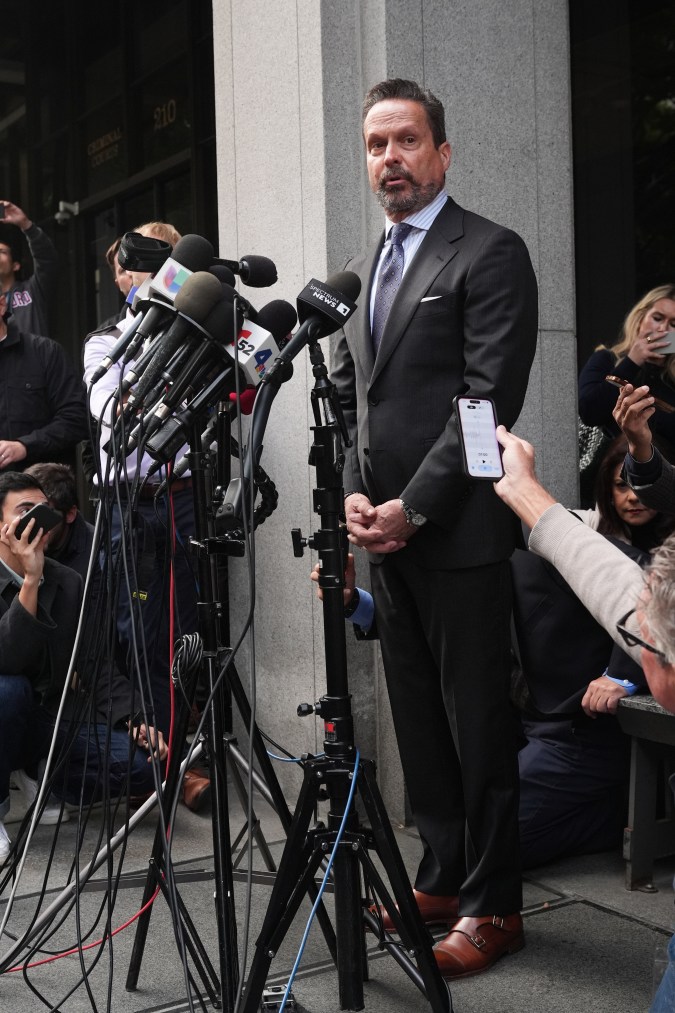 Alan Jackson, abogado de Nick Reiner, llega al tribunal para defenderlo de los cargos de asesinato por el asesinato de sus padres, Rob y Michele Reiner, el miércoles 17 de diciembre de 2025 en Los Ángeles. (Foto AP/Damian Dovarganes).