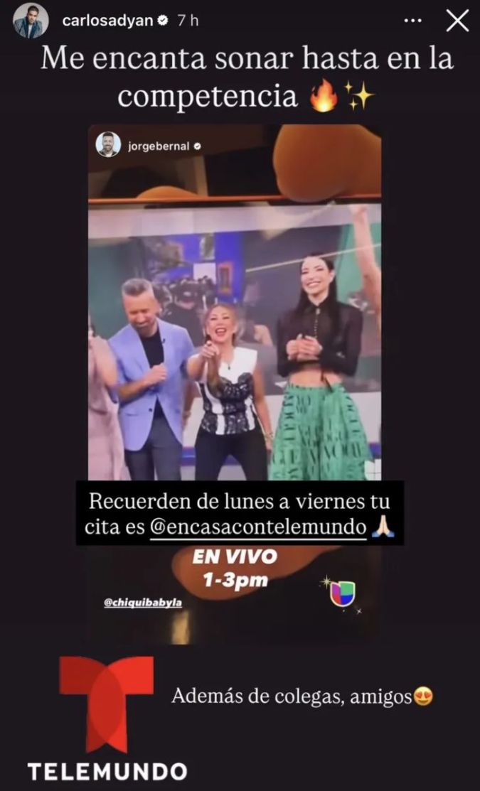 Por su parte, Adyan no se quedó con las ganas de responderle a su colega y a través de sus historias de Instagram escribió: “Me encanta sonar hasta en la competencia”.