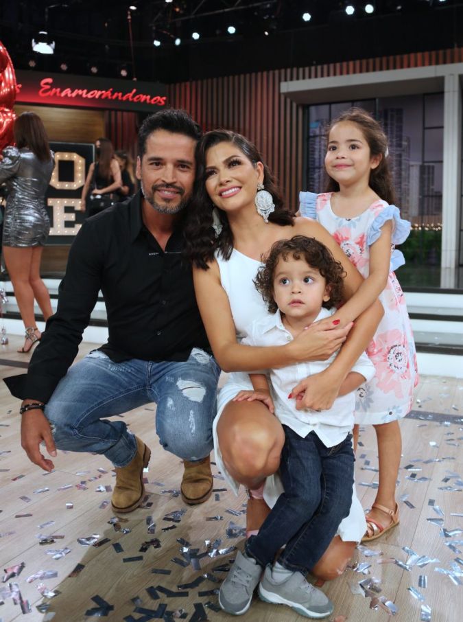 Ana Patricia acompañada de Luis Martínez e hijos en su despedida de «Enamorándonos» (Unimás)/Miami, 11 de junio del 2021.